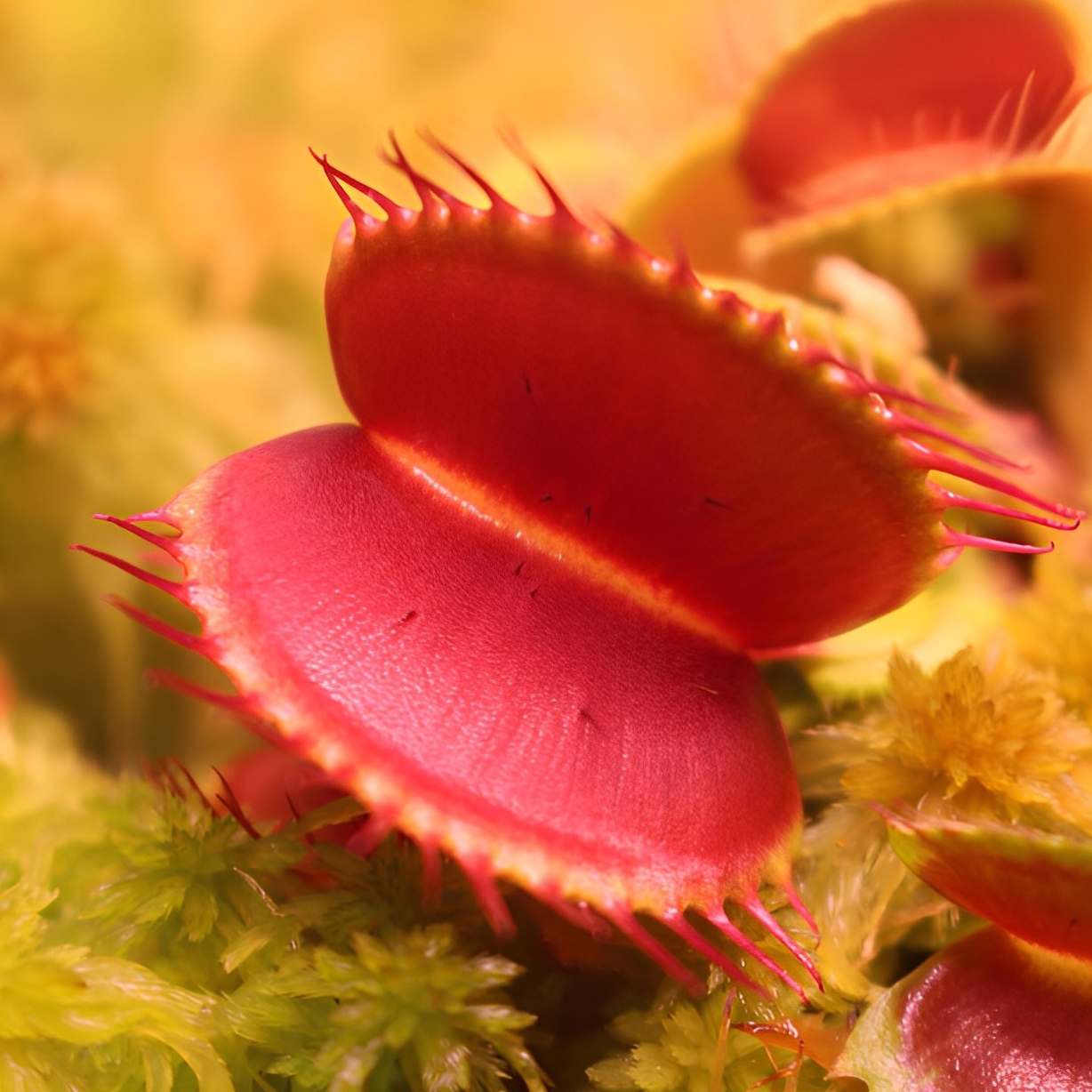 红色融齿捕蝇草是一个直立的品种。全红融合的捕蝇草以其深红色的陷阱和融合的牙齿而闻名。